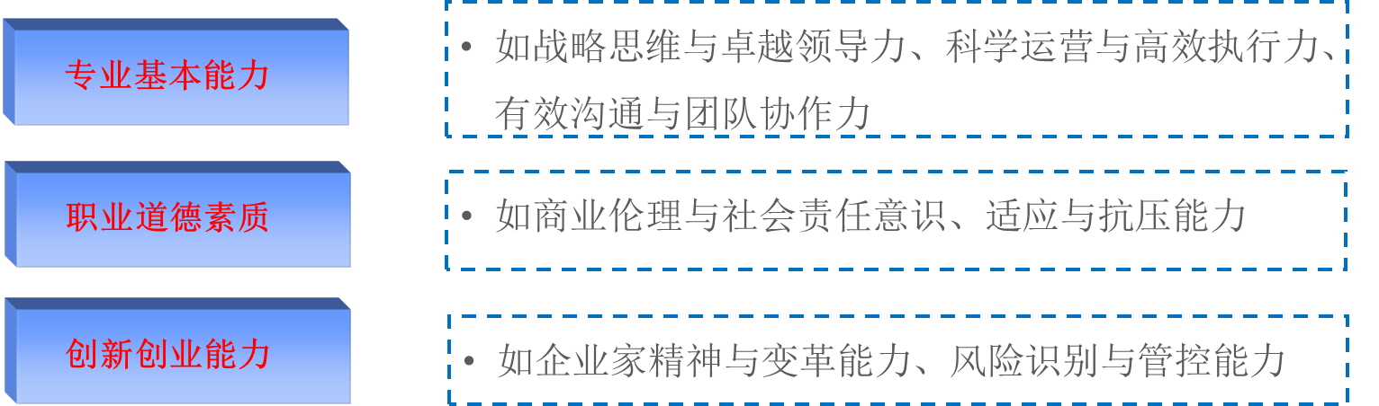 培养“根植商业实践,培养商业伦理与创新精神兼备、国际视野与本土优势兼顾、理论前沿与商业实践兼容”,具有较好的工商管理相关理论基础、企业实际问题解决能力和良好的职业素养的应用型高级管理人才。