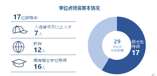 本学位点拥有一支年龄结构结构合理、知识功底扎实、治学严谨的师资队伍,现有硕士生导师17人,其中教授12名,绝大部分导师拥有博士学位,入选各类省级及以上人才7人。