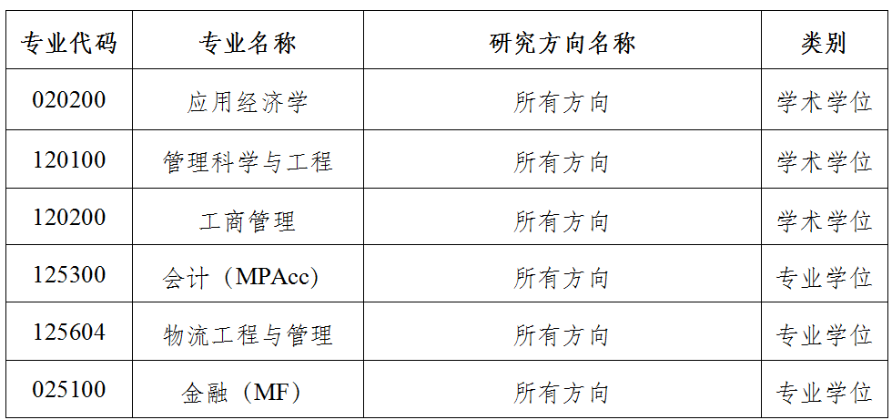 学院所有学术学位和专业学位硕士点(除工商管理硕士MBA以外)均接收。