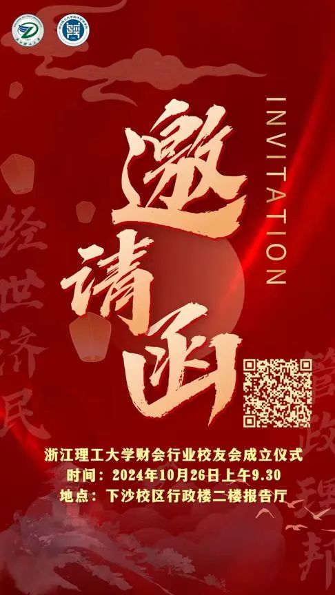 我们诚挚邀请广大财会行业校友拨冗出席,共同见证这一历史性时刻。让我们在这个金秋十月,相聚在浙理,共叙旧情、展望未来,为财会行业校友会的发展贡献力量。(请有意参会的校友扫码填写相关信息)
