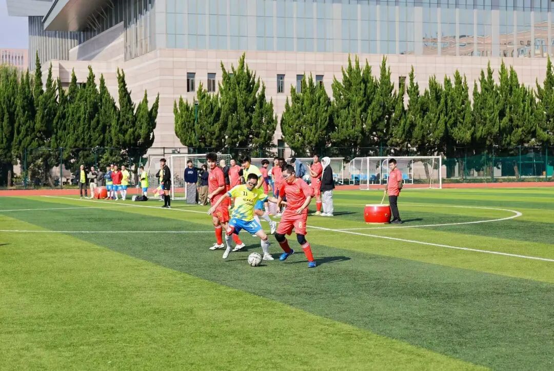 整场比赛节奏紧凑、对抗激烈,又始终洋溢着尊重与团结的深厚情谊。场上精彩攻防不断,场边掌声喝彩不绝。赛事不仅展现了双方出色的竞技水平与体育风度,更以足球为纽带,进一步凝聚了师生校友情感。