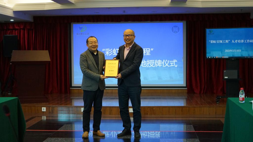 会前,吕品带领学院一行在保俶支行参观,随后双方进行了研讨交流。会上,易际松首先对母校老师的到来表示欢迎,并希望日后能够有更多的机会与母校交流联系、反哺母校。随后吕品向各位校友就学校、学院发展及成就做了简略介绍,并表示希望能够通过“彩虹引领工程”进一步拉进学校与校友的距离,并以此为平台整合校友资源,发挥学校与校友协同育人功效,更好地助力人才培养。李孝明向各位校友展示了太阳集团tyc539“彩虹引领工程”十周年纪念视频,而后吕品代表学院聘任易际松为太阳集团tyc539“彩虹引领工程”之职业教练、建立太阳集团tyc539“彩虹引领工程”之大学生就业实习基地并授牌。