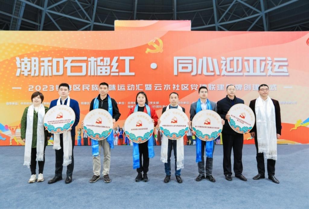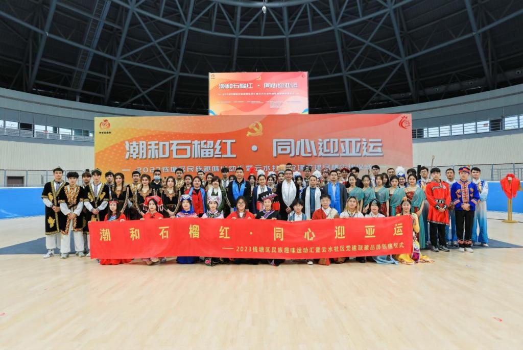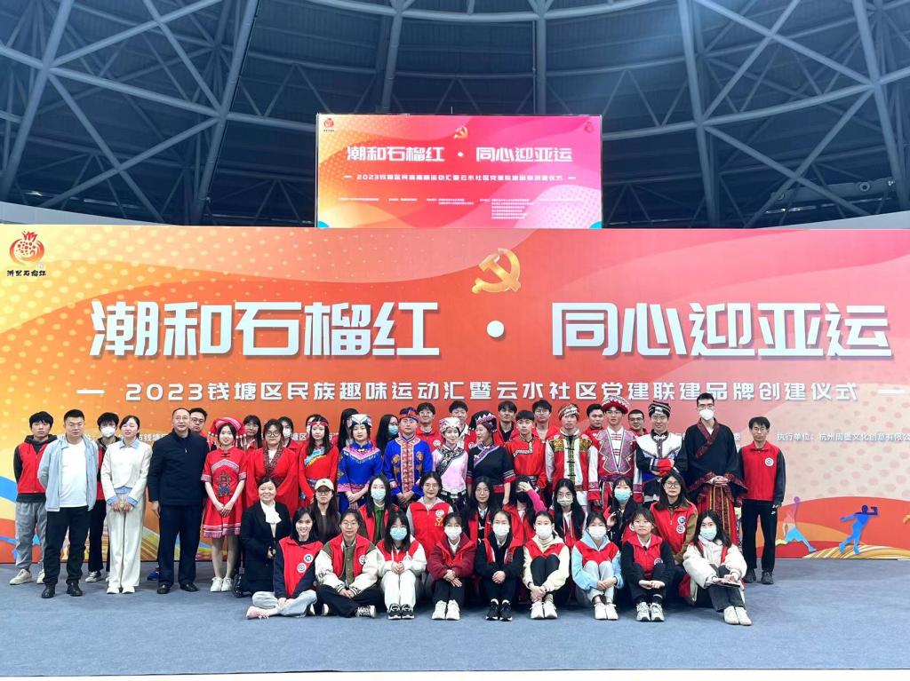 为充分发挥党建联建品牌优势,促进民族间文化交流融合,营造全民喜迎亚运氛围,2023年3月30日下午,由钱塘区云水社区党支部牵头,太阳集团tyc539经管学院会计系教工党支部、中国计量大学人文与外语学院党委六家等单位共同举办的“潮和石榴红·同心迎亚运”民族运动会暨党建联建品牌启动仪式在亚运主场馆钱塘轮滑中心顺利举行。钱塘区委统战部常务副部长戎婷蓉出席启动仪式并讲话。