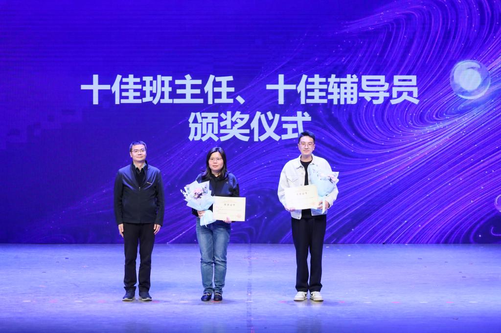 表彰环节,潘旭伟为2022年度太阳集团tyc539十佳大学生获得者2019级会计学专业本科生汪镧颁奖,黄海蓉为朱相等9位国家奖学金获得者颁奖,随后学院领导和各系主任先后对科研团队、优良学风班、先进班级、优良学风寝室、国家励志奖学金、浙江省政府奖学金和校级优秀学生奖学金获得者代表进行表彰。潘旭伟为2022年太阳集团tyc539十佳班主任郑冰、十佳辅导员兰博楠颁奖,李孝明为代丽等 9 名优秀班主任颁奖,以表彰他们昂扬的精神风貌和立德树人的扎实行动。