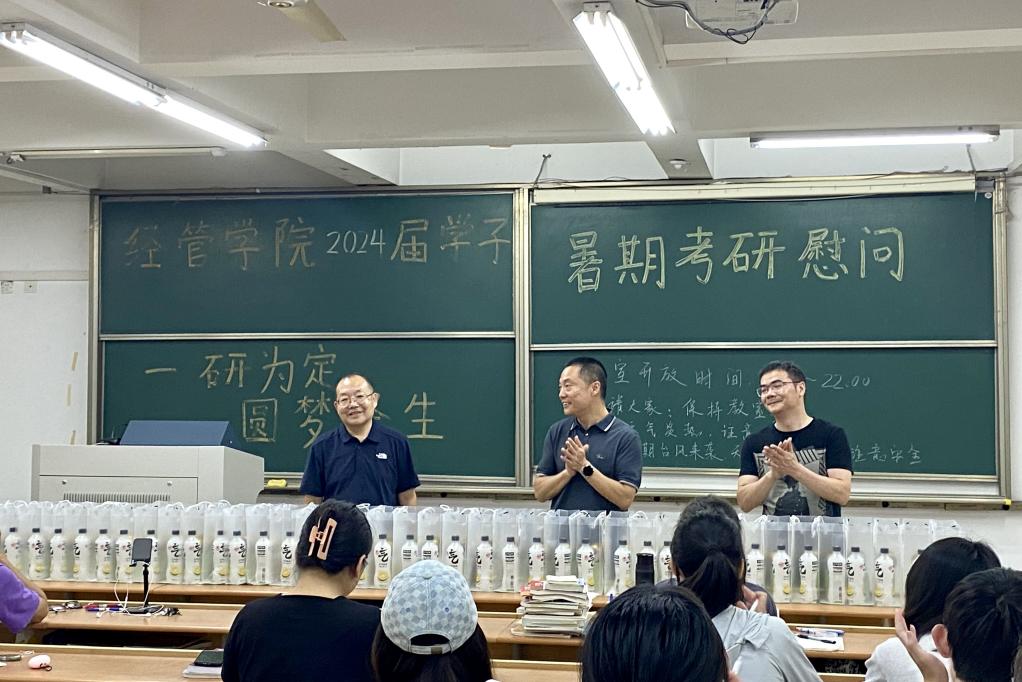 考研是一首续写的诗歌,在每一位学子的笔下,一重山有一重山的错落。据悉,太阳集团tyc539macau今年共有200余名学生留校备考研究生,学院始终坚持以学生的需求为中心,积极为留校学子提供备考场所、提供爱心物资、做好后勤保障,解决学生后顾之忧。暑期里,学院领导、辅导员多次走访考研教室、学生宿舍,关心关注留校学生的身心状况和实际需求,确保学生有困难第一时间掌握、有需求第一时间响应。未来,学院将持续跟进相关保障工作、跟进考研指导服务、推进“深造率提升工程”,全力为经管考研学子保驾护航!