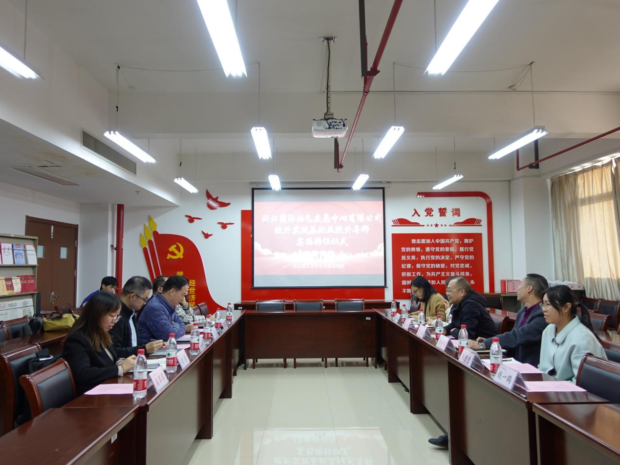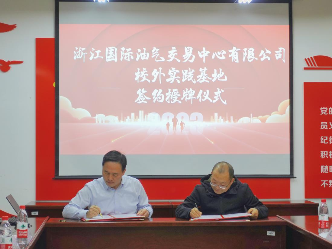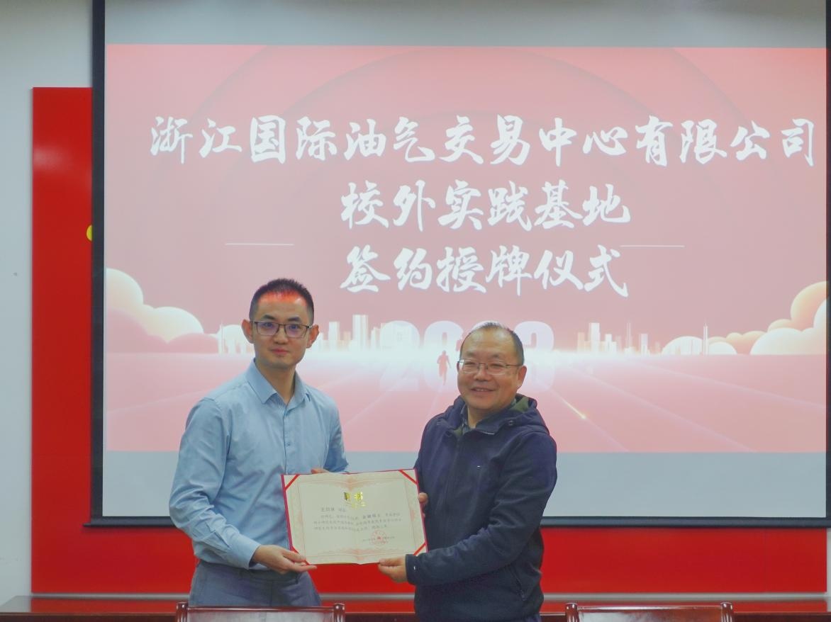 在双方相互介绍后,学院党委书记吕品与浙油中心副书记纪宏涛分别代表双方签订《校外实践基地合作协议》,并进行授牌。吕品书记也代表学院向王白冰部长颁发了金融专硕校外导师聘书。