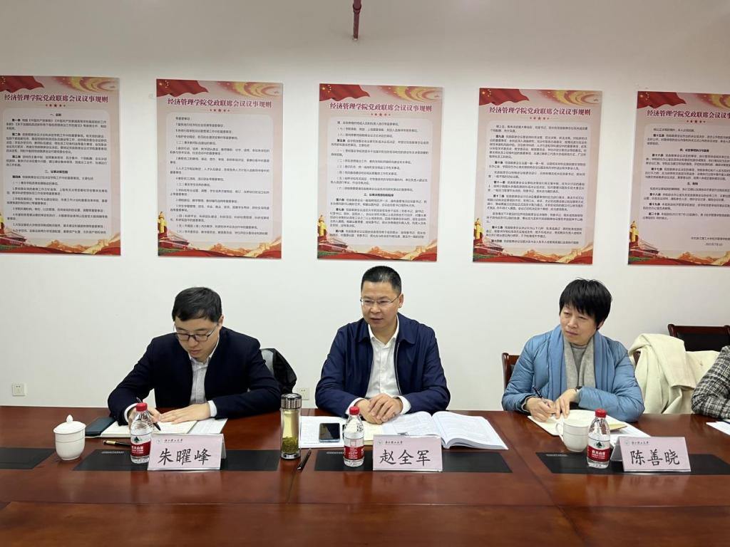 赵书记在听取了学院两位主要领导的汇报后谈了他对经管学院的印象。一是作为学校老牌专业和师生规模较大的学院,要有责任重大、使命光荣的内在自觉;二是学院成长发展潜力和空间较大,经管类专业学科服务地方经济社会发展的需求较大,要在服务地方经济方面加大拓展力度,把机遇转化成成果;三是学院在发展中肯定会遇到不少困难和挑战,要加强研究、练好内功。