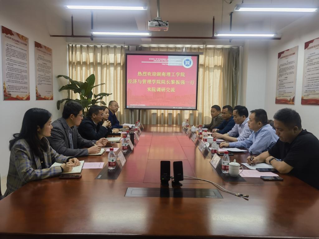 4月18日下午,湖南理工学院经济与管理学院院长黎振强一行五人来我院调研交流。院长潘旭伟、副院长黄海蓉、副院长廖中举等领导以及会计系、院综合办相关老师参加,会议由潘旭伟院长主持。