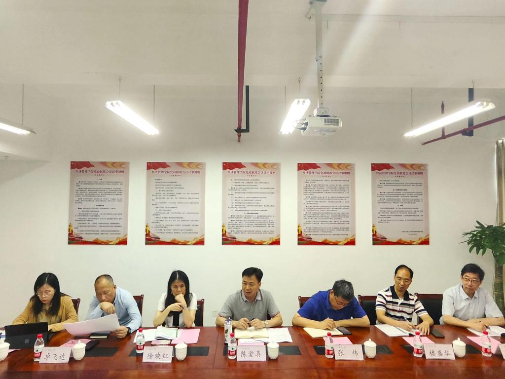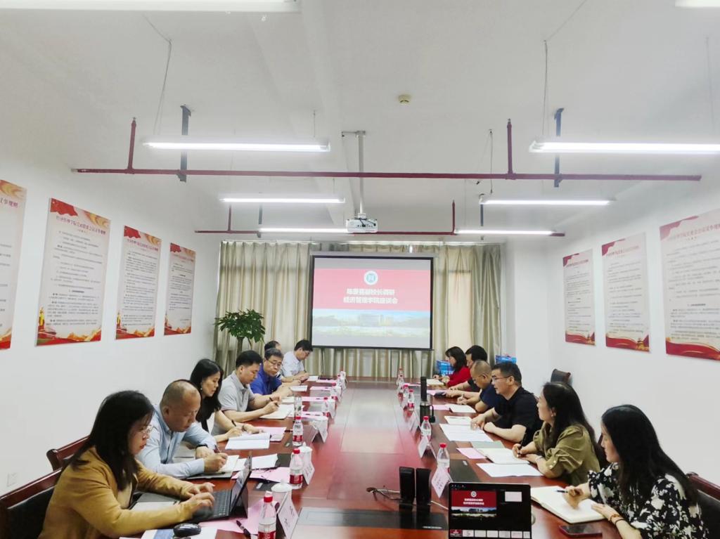 在听取学院工作汇报和教师座谈后,陈爱喜对学院整体精神风貌和工作成效给予肯定,对学院发展提出指导意见:一是凝心聚力,高质量完成教育教学审核评估评建工作。指标研学要透彻做到心中有数,师生动员要全面做到人人参与,组织实施要有力做到责任明确;二是发挥优势,逐渐拓宽创收渠道。学院应积极发挥经济学和管理学学科优势,在MBA教学、开发横向项目上下功夫,拓宽渠道,增加创收,作为学院教学经费的有益补充;三是以本为本,扎实开展本科生教育教学工作。结合经济社会发展趋势,学院做好专业优化,不断提高人才培养质量,积极回应社会关切。