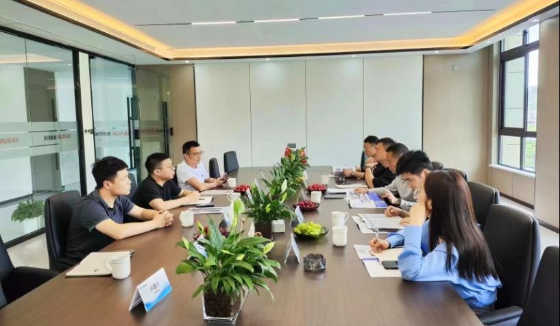 李孝明一行首先在曹阳的陪同下参观了公司的生产车间。随后在座谈会上,首先曹阳向大家介绍了公司的发展情况和主营的业务板块,并表示希望能与母校建立起更多地联系与合作,特别是在企业发展、技术研究等方面,共同推动校企双方的高质量发展。随后刘世杰校友就自身公司的创立、发展和目前公司发展中员工的培养和提升等方面与大家做了交流。