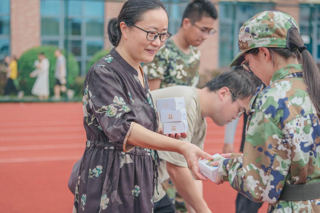 清晨,经管学院院长潘旭伟、计算机学院副院长姚青来到北田径场看望慰问2024级参加军训的学生和负责本次军训任务的教官及指导员,为大家发放月饼及运动饮料。现场,潘旭伟对同学们的训练状态表示赞扬,肯定了同学们坚持不懈、吃苦耐劳的训练精神,希望同学们能够继续突破自我、团结协作、坚韧不拔,不仅在军训中取得优异成绩,在未来的人生中也能取得成功。此前,经管学院各系教师代表也前往军训场地开展了相关慰问活动。学院的关怀和勉励,极大地鼓舞了参训学生的士气,同学们将以更加饱满的精神投入训练中,保质保量完成军训任务。