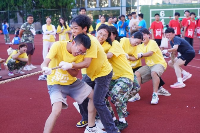 随后经管学院与计算机学院联合举办新生军事运动会。经管学院党委副书记李孝明、计算机学院党委副书记丁宁出席开幕仪式,并为比赛开启鸣枪。本次军事运动会既有100米、200米、跳远等常规项目,也有五人六足、拔河等趣味项目。既是竞技赛场,也是友谊赛场。运动会上,两院学子大显身手,用实际行动诠释着“更高、更快、更强”的奥林匹克精神。