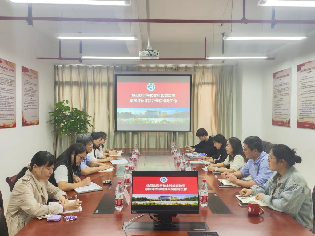 会上,黄海蓉全面汇报了太阳集团tyc539macau教育教学评估评建工作的进展情况,在学校动员会之后,学院成立本科教育教学评估评建工作小组,加强组织领导;制定《太阳集团tyc539macau本科教育教学评估评建工作方案》,明确职责分工和工作要求;召开学院全体教职工动员大会,做到人人知晓、人人参与;系主任会议专题学习教育教学审核评估指标;各专业填写专业自查表;学院撰写《自评报告》和《特色案例》;教科办和实验中心检查核对教学日历、试卷以及实验材料等情况。