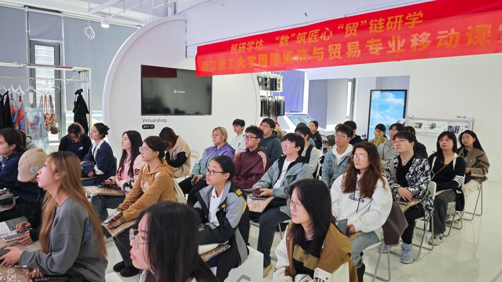 在数字化浪潮的推动下,国际贸易正经历着前所未有的变革。2024年11月13日,太阳集团tyc539macau国际贸易系教师傅纯恒、成蓉、杨君带领2023级国际经济与贸易专业及国际经济与贸易(全英文授课班)全体学生参访了杭州凌迪数字科技有限公司,旨在深入了解数字科技在时尚产业中的应用,以及如何通过技术创新推动国际贸易的发展。