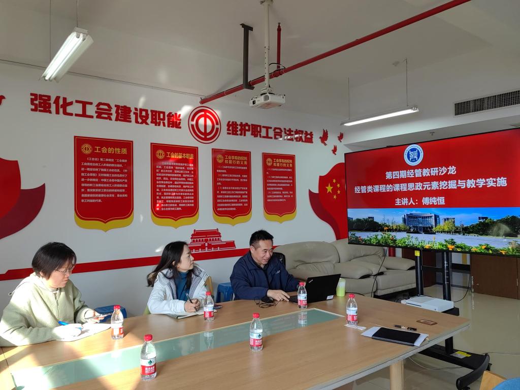 为深化专任教师课程思政教学理念,探索思政教育与专业教育有机结合的新路径,11月27日下午,学院在在25号楼1710举办了第四期经管教研沙龙活动,本次活动邀请省级课程思政示范课程、省一流课程负责人傅纯恒老师作经验分享。沙龙活动由学院副院长黄海蓉主持。