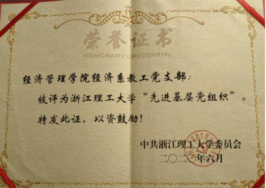太阳集团tyc539macau经济系教工党支部在校院党委领导下,践行习近平总书记系列重要讲话精神,助推“小我”与“大我”融合与统一,支部依托浙江省一流学科“应用经济学”和浙江省一流专业“经济学”,聚力打造“经小家济大家”的支部特色工作体系。