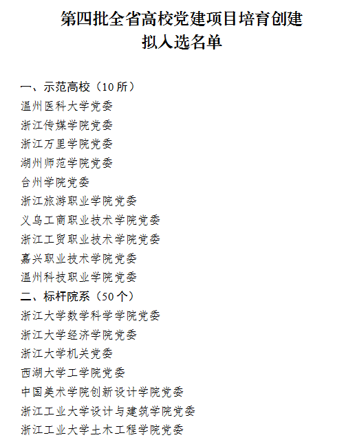 近日,浙江省教育厅公布了第四批全省高校党建项目培育创建对象,确定10所党建工作示范高校、50个标杆院系、100个样板支部、10个研究生样板党支部、50名研究生党员标兵为第四批全省高校党建项目培育创建对象。经济系教工党支部成功入选第四批全省高校党建工作样板党支部!