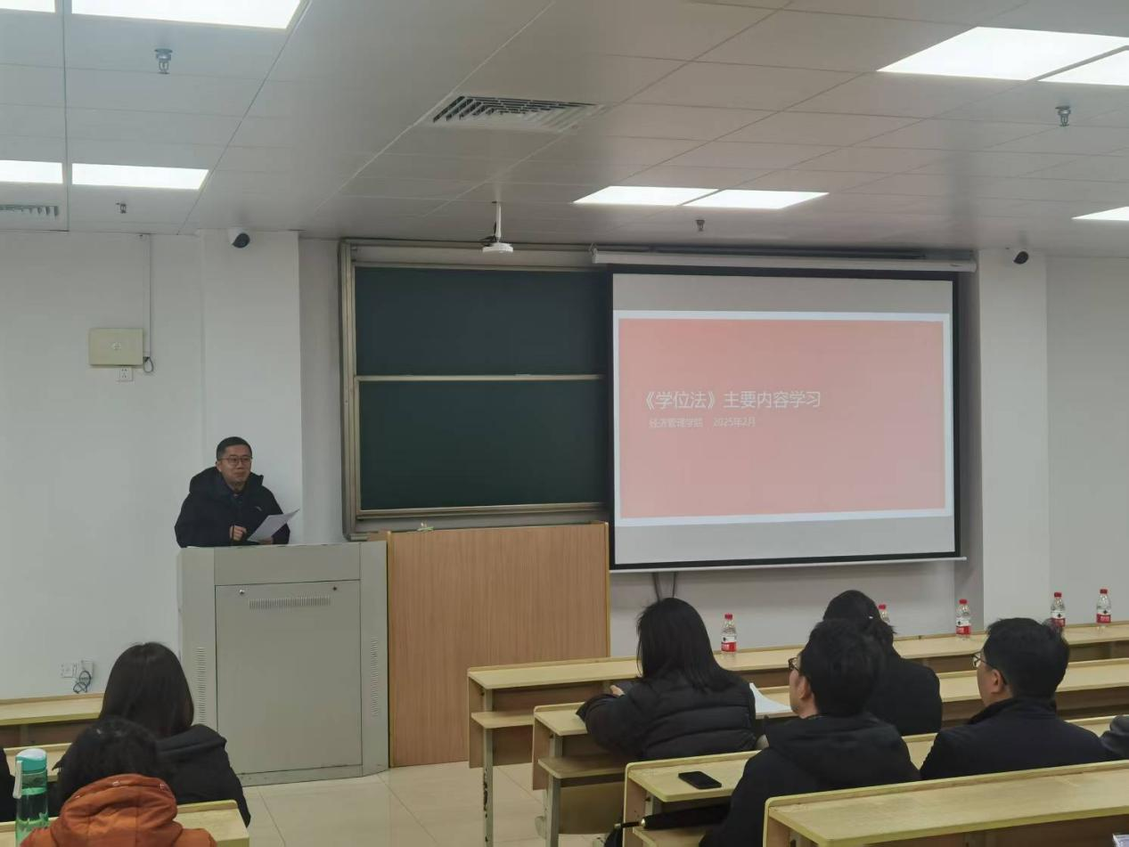 薛宪方副院长还结合学院实际情况,分析了《学位法》对太阳集团tyc539macau研究生教育的具体影响。他提到,学院将根据《学位法》的要求,进一步完善研究生培养方案和学位授予细则,优化课程设置,加强实践教学环节,以培养更多适应社会需求的高素质经济管理人才。