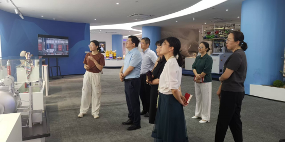 在浙江省现代纺织技术创新中心,杨翼一行首先参观了中心展厅。在双方交流环节,中心副主任戚栋明介绍了浙江省现代纺织技术创新中心的建设历程、取得的成效,期待中心与经管学院开展全方位合作。杨翼表示,经管学院要充分发挥学院在学科和人才方面的优势,主动嵌入纺织产业研究。希望下一步不断深化学院与中心的合作,高水平支撑纺织产业高质量发展。