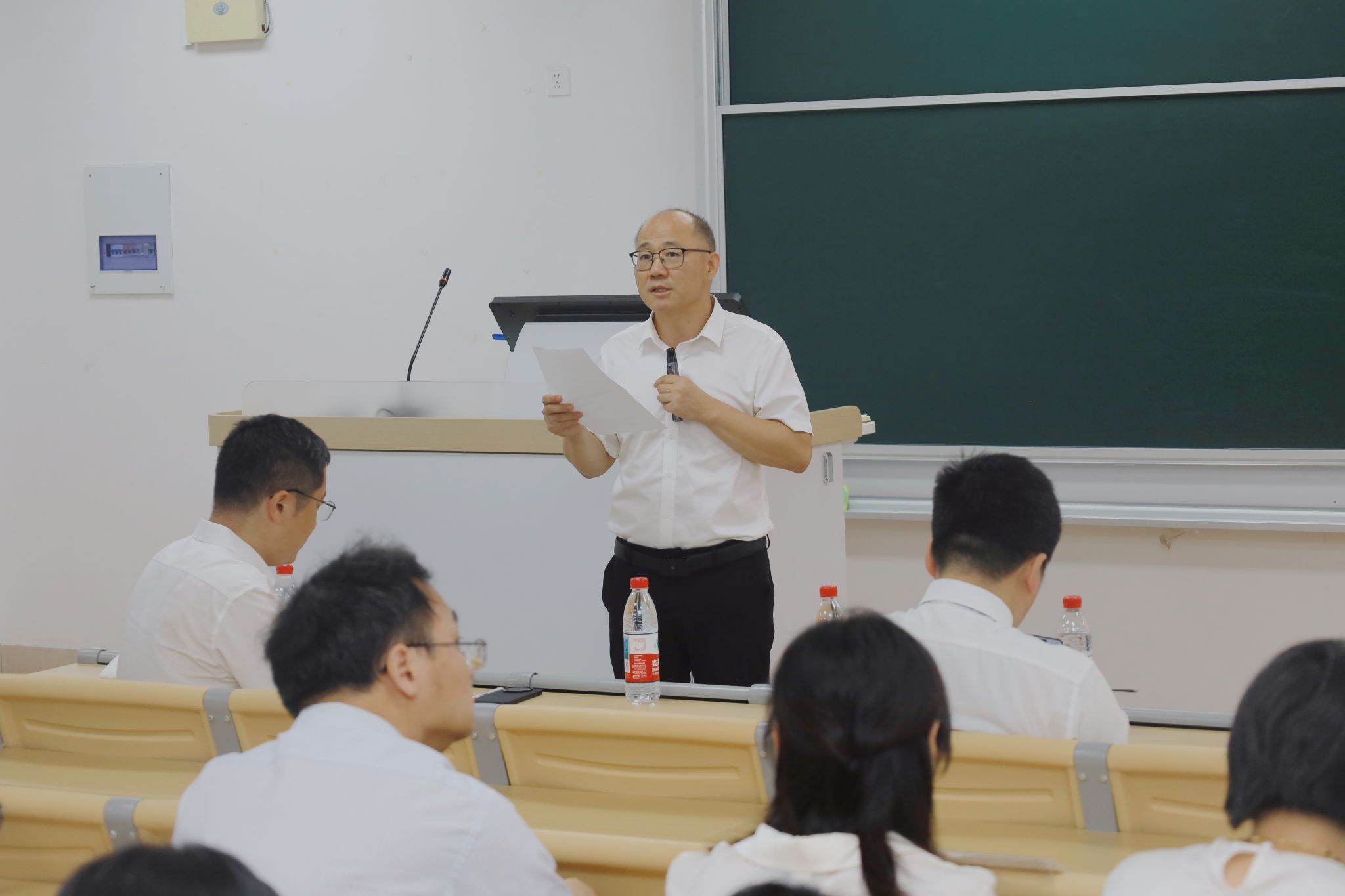 彭学兵介绍了学院新进教师,传达学习了学校2025年暑期党委务虚会和下半年工作部署会精神。他重点传达了校党委书记赵全军强调的“实战、实干、实效”工作要求,博士点“特、新、硬、顺”的工作思路,以及“十五五”规划“科学、开门、务实、联动”的编制总要求;传达了校长陈文兴在学校高质量发展研讨会上的讲话精神,以及在2025年下半年工作部署会上提出的五个“聚力”推动关键领域突破。他强调要把博士点工作摆在头等重要位置,全院上下同心协力、攻坚克难,以无畏的勇气、饱满的热情和昂扬的斗志,确保下半年学院各项工作取得新进展、新突破。