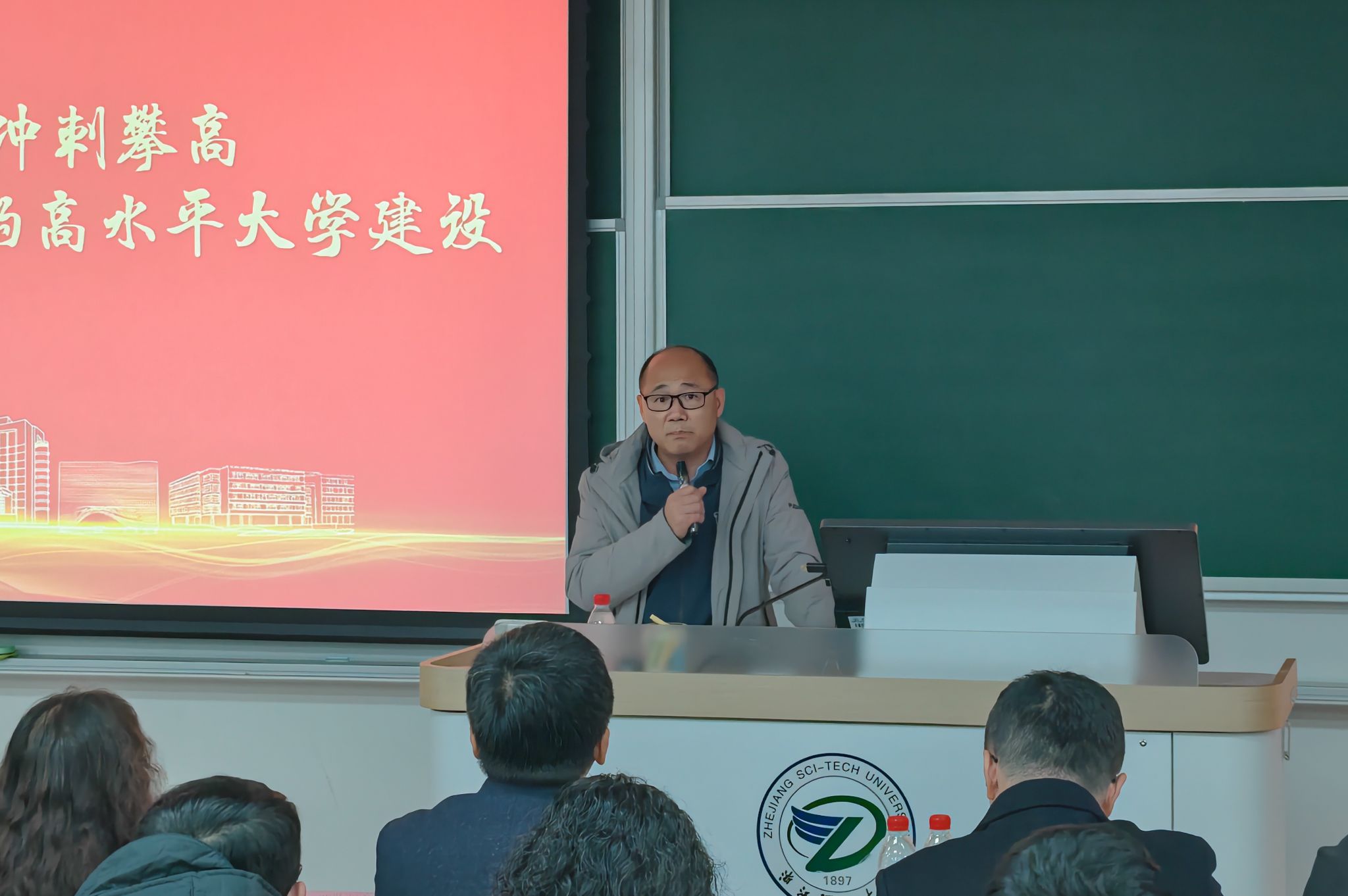 杨翼深入分析学院发展面临的机遇与挑战,系统部署2026年改革发展重点工作。他指出,2026年是学院发展的关键之年,要围绕三大重点任务聚力攻坚:一是全力冲刺博士点申报,整合优势资源,力争实现突破;二是深化学位点结构调整,挖掘专业学位创收潜力,拓展中外合作办学渠道;三是推动科研高质量发展,改革科研评价体系,加强有组织科研,重点打造3-4支战略性科研团队,聚焦纺织行业特色,力争产出一批标志性成果。