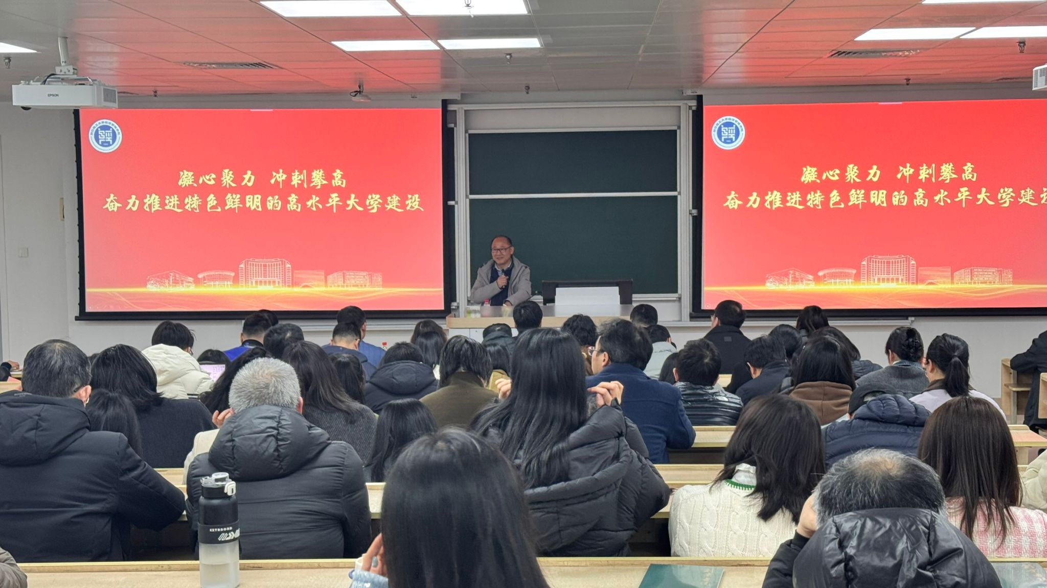 彭学兵传达学校2026年新春第一会精神,重点传达解读了会议聚焦的“凝心聚力、冲刺攀高,奋力推进特色鲜明的高水平大学建设取得显著进展”主题内涵,传达了学校统筹实施学科攀高、标志性成果冲刺、引领保障提升“三大计划”的部署要求,以及聚力攻坚“双一流”、全力抓好标志性成果产出等四方面重点工作的部署。彭学兵指出,学校新春第一会为学院发展指明了方向,他鼓励全体教师凝心聚力、冲刺攀高,为学校奋力推动特色鲜明的高水平大学建设贡献经管力量。