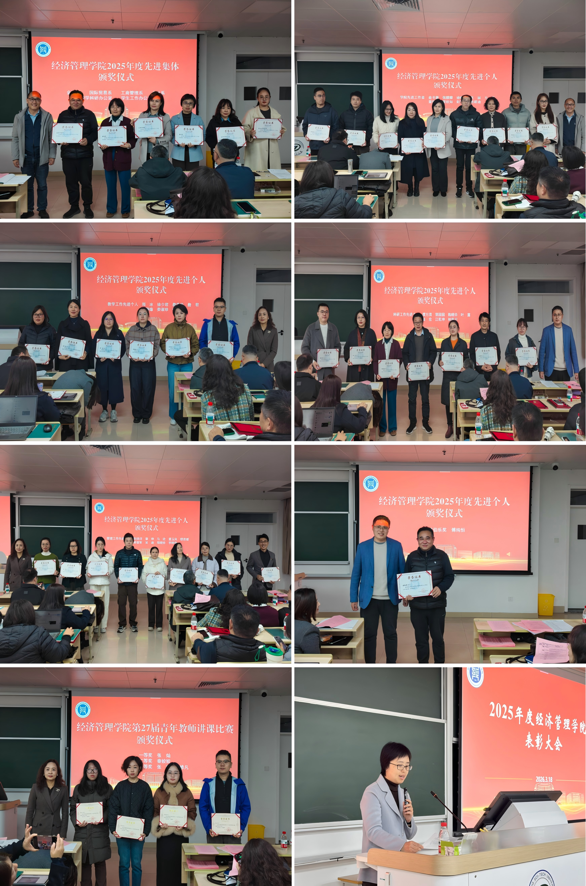 会议表彰了2025年度学院先进集体、先进个人和第27届青年教师讲课比赛获奖教师。学院领导为相关荣誉获得者颁发证书。会计系主任覃予作为先进集体获奖代表发言。