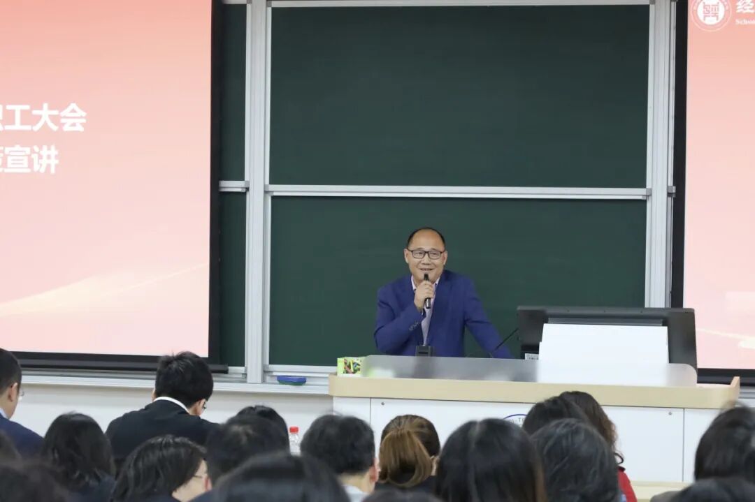 党委书记兼副院长彭学兵就树立和践行正确政绩观学习教育、党员与教师政治理论学习、网络安全、教职工因私出国(境)政策、学术道德规范等事项进行重点强调和提醒。他结合近期处理的典型案例开展警示教育,要求全体教职工增强纪律意识和规矩意识,严格遵守各项规章制度,共同营造风清气正、规范有序的学院工作氛围。