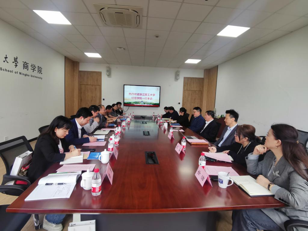 宁波大学商学院院长金祥荣、副院长谢慧明、副院长朱一鸿和学院相关办公室负责人热情接待了我院一行。金院长和潘院长分别介绍了各自学院的相关情况,双方就人才培养、科学研究、研究生培养、二级学院管理方面展开了深入交流。